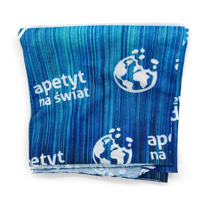 Chusta Apetyt na Świat zapakowana jest w estetyczną ekologiczną kopertę, doskonale nadaje się więc na prezent.